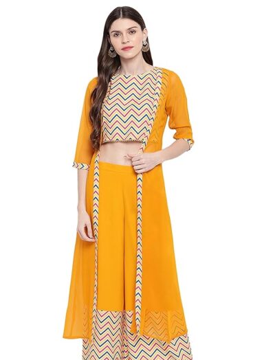 Women’s Yellow Crop Top with Palazzo and Jacket
